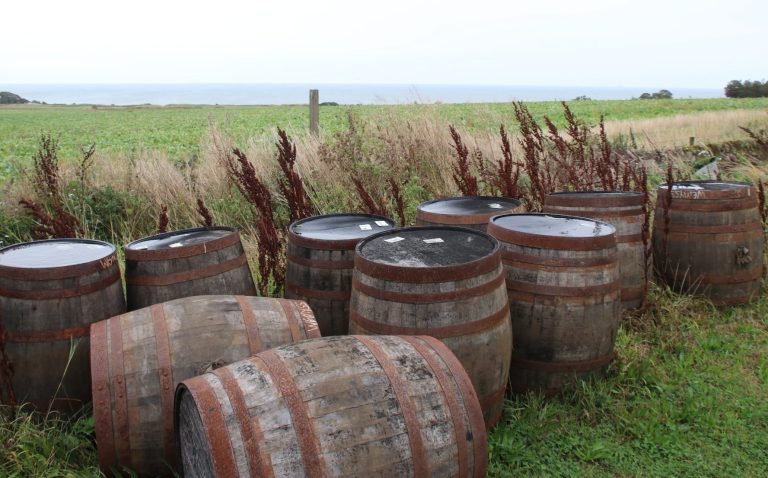 Natürlich setzt man auch auf lokale Produkte - das Getreide ist aus dem umgebenden County Fife, und das Wasser vom eigenen Grund. Das ganze geht dann überwiegend in Ex-Bourbon-Fässer, aber auch etwas in STR-Fässer.